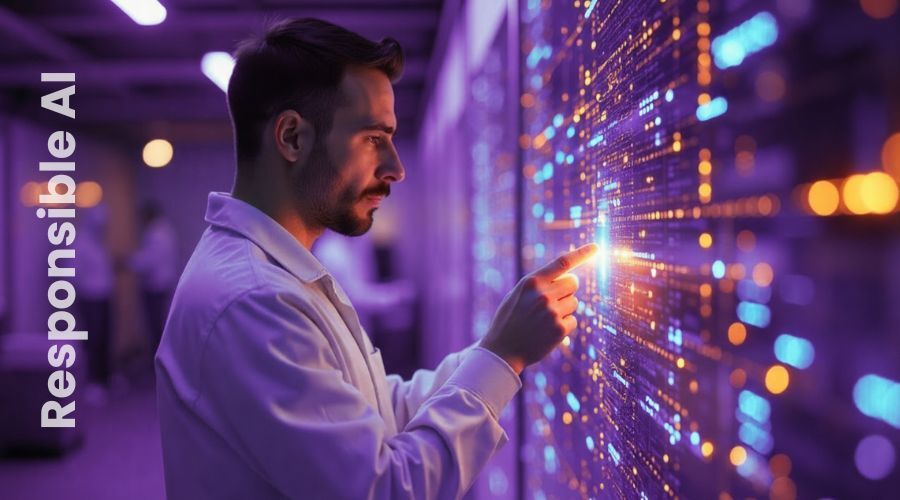 Responsible AI is the practice of designing, developing, and deploying artificial intelligence systems in a way that is ethical, transparent, fair, and accountable. It ensures that AI not only delivers efficiency and innovation but also respects human values, rights, and societal norms.